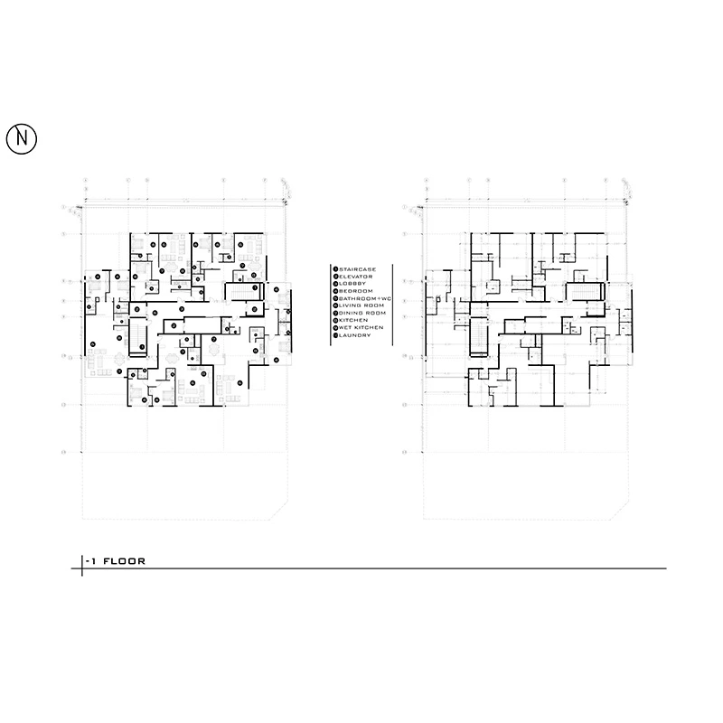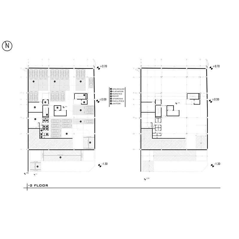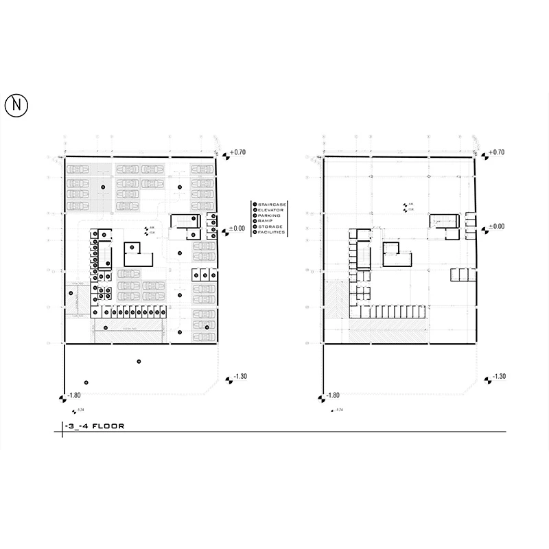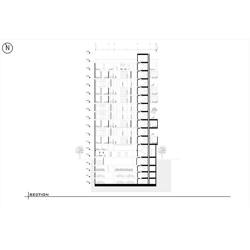 در این طرح، بهجای استفاده از پاسیوی محصور، فضاهای باز متصل به حیاط یا خیابان برای تأمین نور طبیعی و تهویه پیشبینی شدهاند. تودهگذاری و جانمایی پنجرهها با دقت در رعایت فاصله مناسب از همسایگان و حفظ کیفیت فضایی انجام شده تا محیطی روشن، سالم و قابلتنفس برای ساکنین فراهم شود.