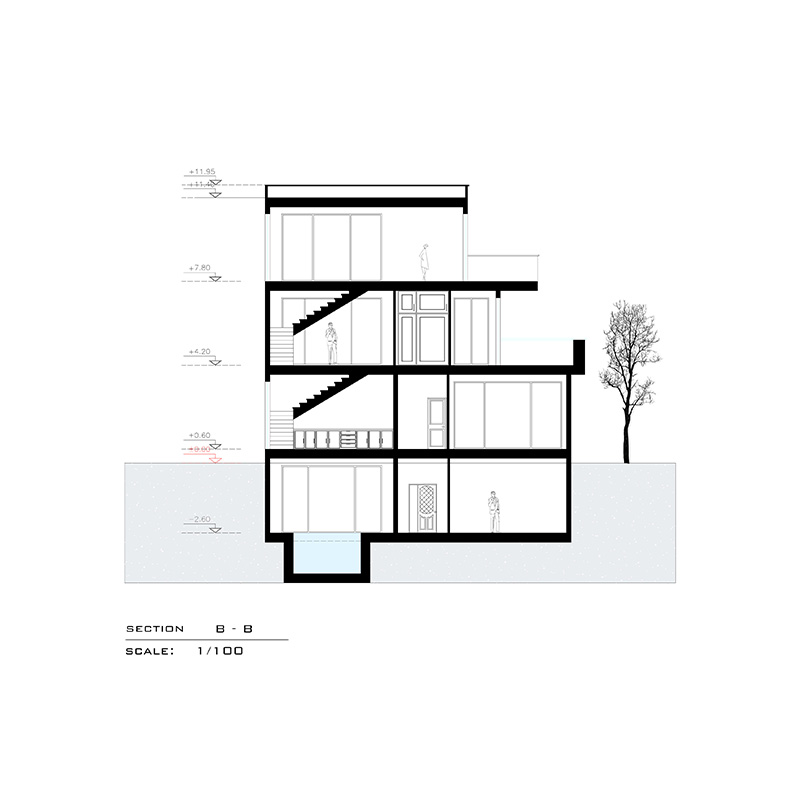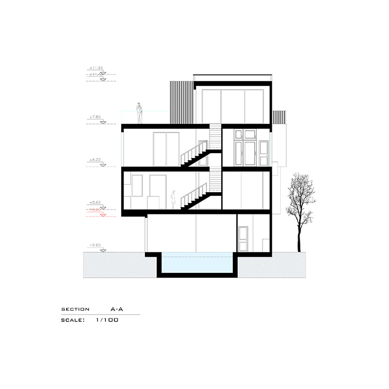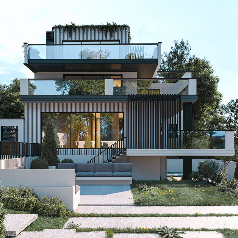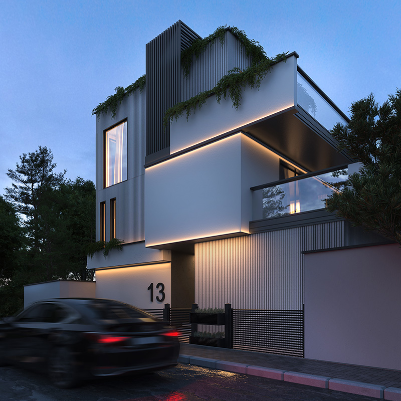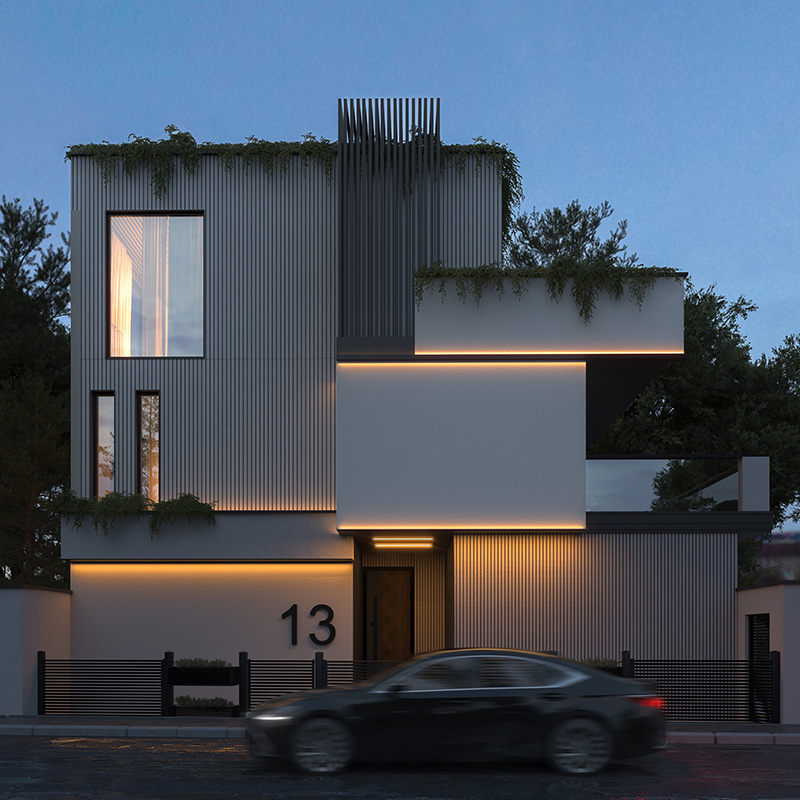 این پروژه شامل یک طیقه زیر زمین و همکف و شاه نشین در طبقه اول است. چالش اصلی پروژه کرمی این بود که ورودی سواره و پیاده متفاوت و در دو تراز ارتفاعی متغیر بودند و گذر سواره و گذر ای که به حیاط میرسید، اختلاف ارتفاع فاحشی داشتند. تراس های بزگ و قابل چیدمان و سه اتاق خواب مستر نیز جز خواسته های کارفرما بودند که طراحی شدند. همچنین استخر و باشگاه ورزشی نیز در این ویلا طراحی شده است.